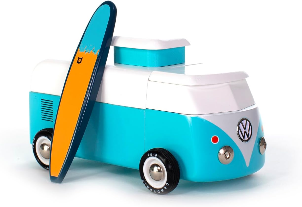 - VW Beach Bus Ocean aduce vibe‑ul verilor nesfârșite direct în colecția ta. Inspirat de legendarul microbuz Volkswagen, acest model Candylab combină estetica retro cu o execuție impecabilă din lemn masiv, finisat manual. Culorile oceanice și liniile curate îi dau un aer relaxat, perfect pentru joacă, decor sau colecționare.