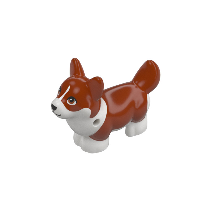 109845pb02: Dog, Friends Style, Corgi with Molded White Lower Body and Face and Printed Black Nose and Mouth, Dark Orange Eyes, White Blaze Pattern (Waffles)