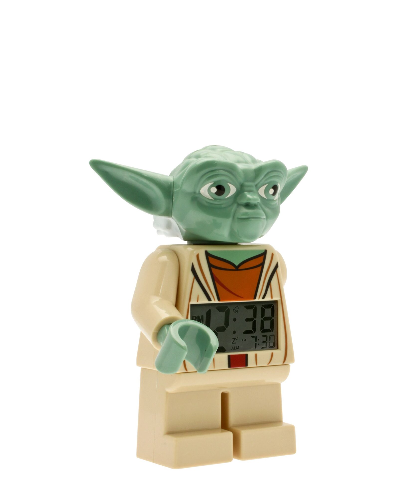 Ceasul deșteptător în forma simpaticului și înțeleptului Yoda, are o mărime de 24 cm și poate devenii cadoul perfect pentru orice fan. Prin simpla apăsare pe capul acestui ecranul diplay al ceasului este luminat și alarma oprită.