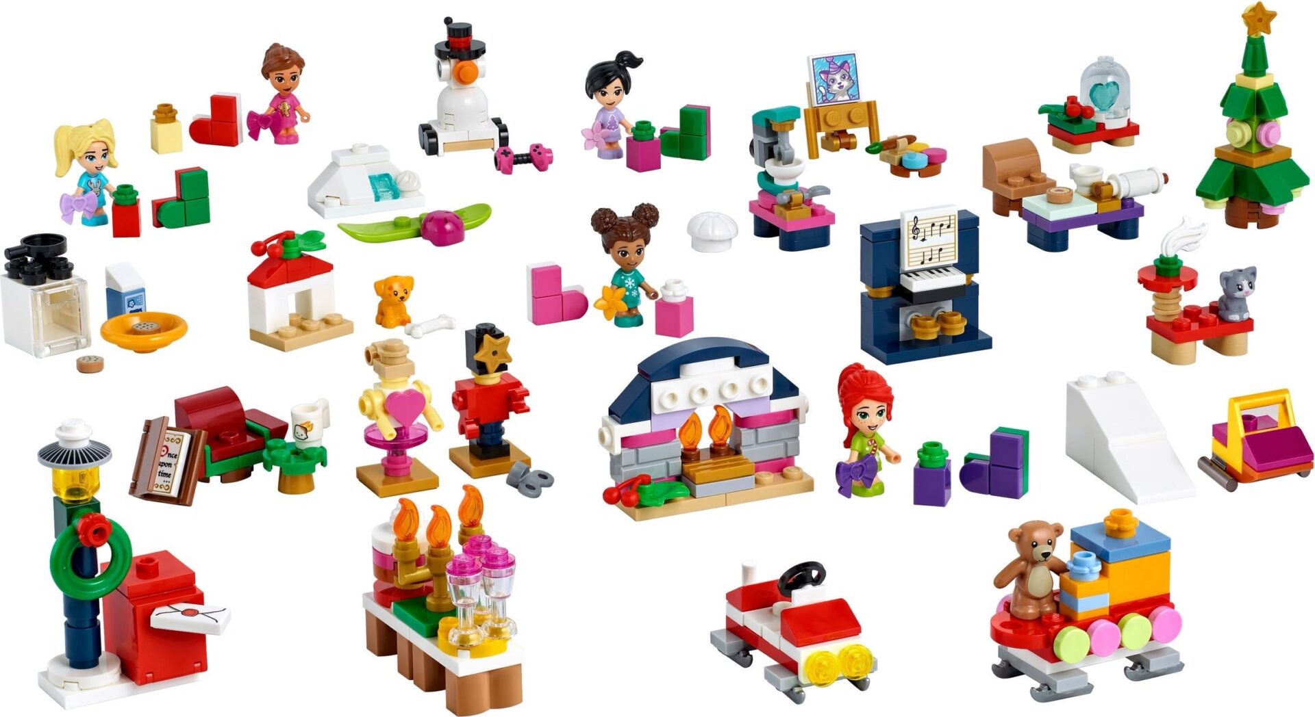 Cele 24 de cadouri includ 5 personaje LEGO Friends în format de micro-păpuși. Există și câte un cadou care reprezintă pasiunea fiecărei fete. Acest set creativ de construcție îi încurajează pe copii să își recreeze activitățile preferate din vacanță.