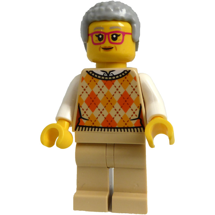 twn491: Natural History Museum Visitor – Female, Tan Knit Argyle Sweater Vest, Tan Legs, Light Bluish Gray Coiled Hair, Glasses